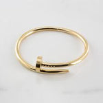 The Elegance Nail Bracelet in gold is a striking piece that balances minimalist design with a touch of glamour. Whether worn alone or layered with other bracelets, it's the perfect accessory to elevate your style for any occasion.